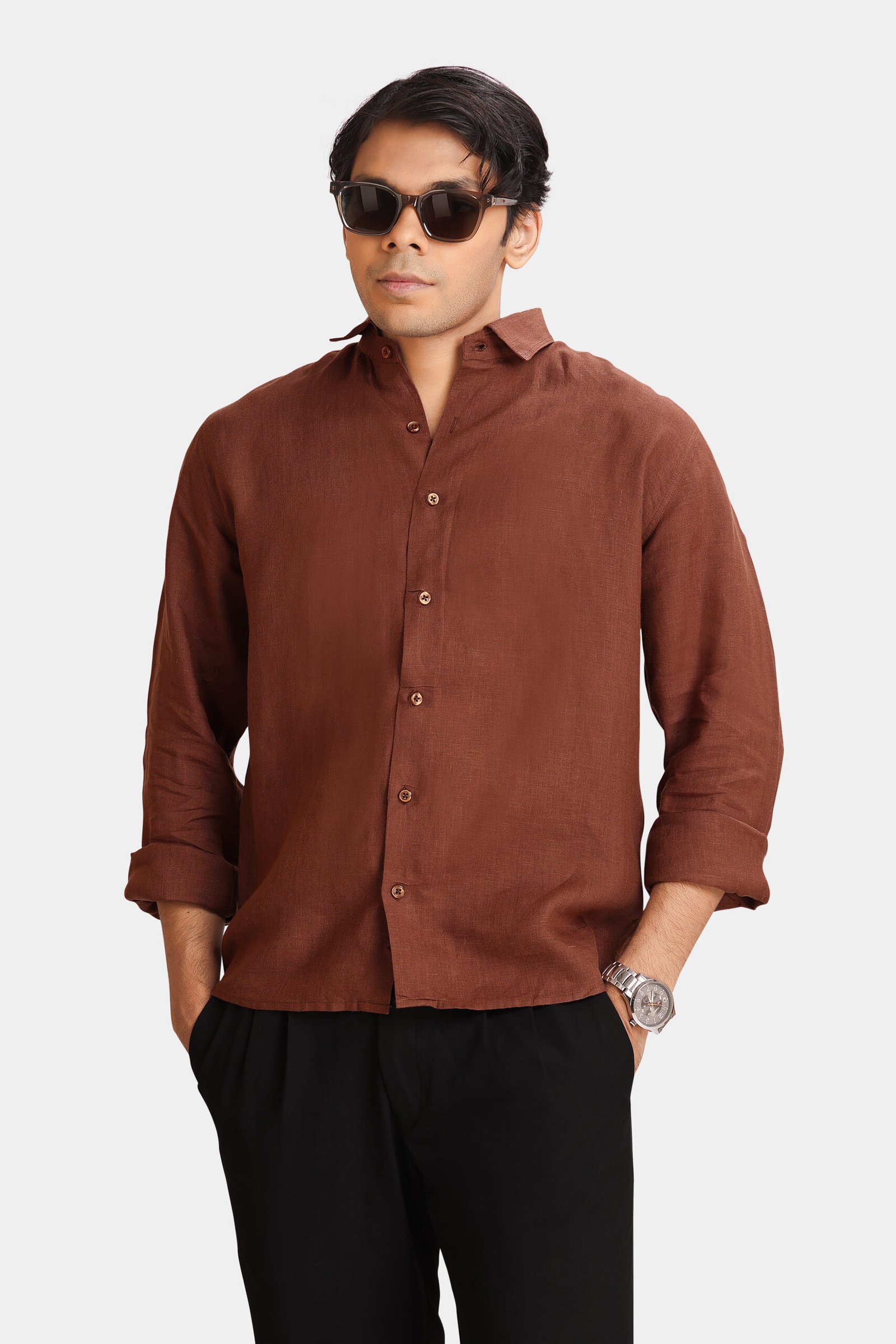 Inspired by the effortless style of James Bond, this relaxed-fit linen shirt is crafted from premium European linen (60 Lea) for exceptional breathability and comfort. Its slightly cropped length enhances proportions by visually elongating the legs, creating a sharp yet relaxed silhouette — perfect for warm weather and understated elegance.
